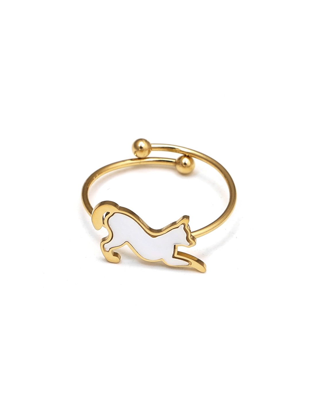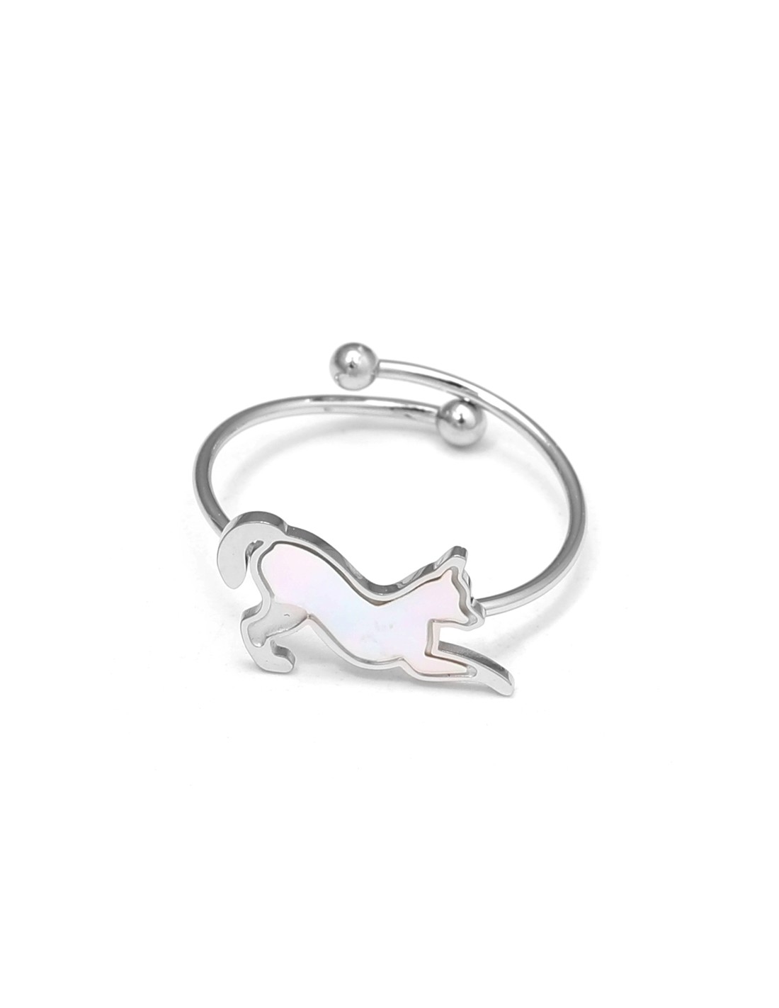 Anillo delicado con un diseño de un pequeño gato de nácar, capturando la esencia de la naturaleza y la ternura. Ideal para los amantes de las joyas finas y los detalles únicos.