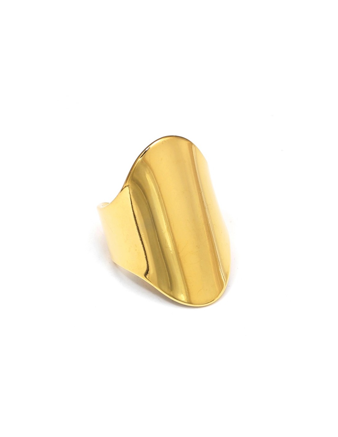 Anillo dorado de diseño minimalista con acabado liso y moderno.