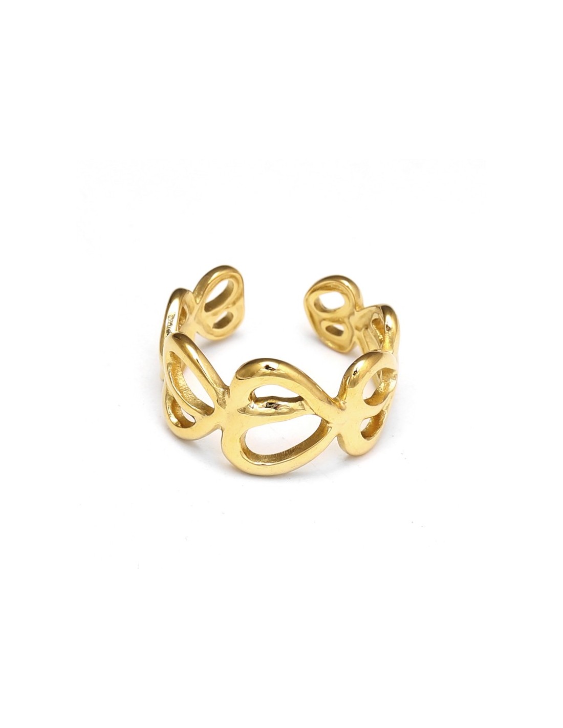 Anillo con formas curvas entrelazadas, estilo artístico.