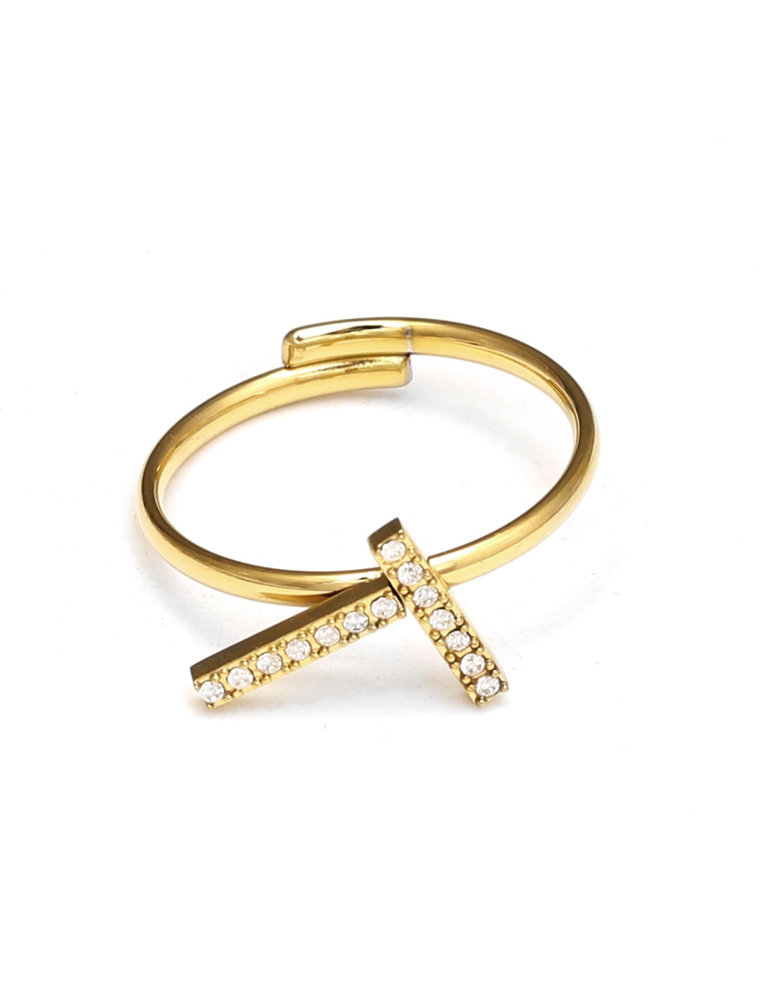 Anillo con diseño cruzado y pequeños cristales brillantes.