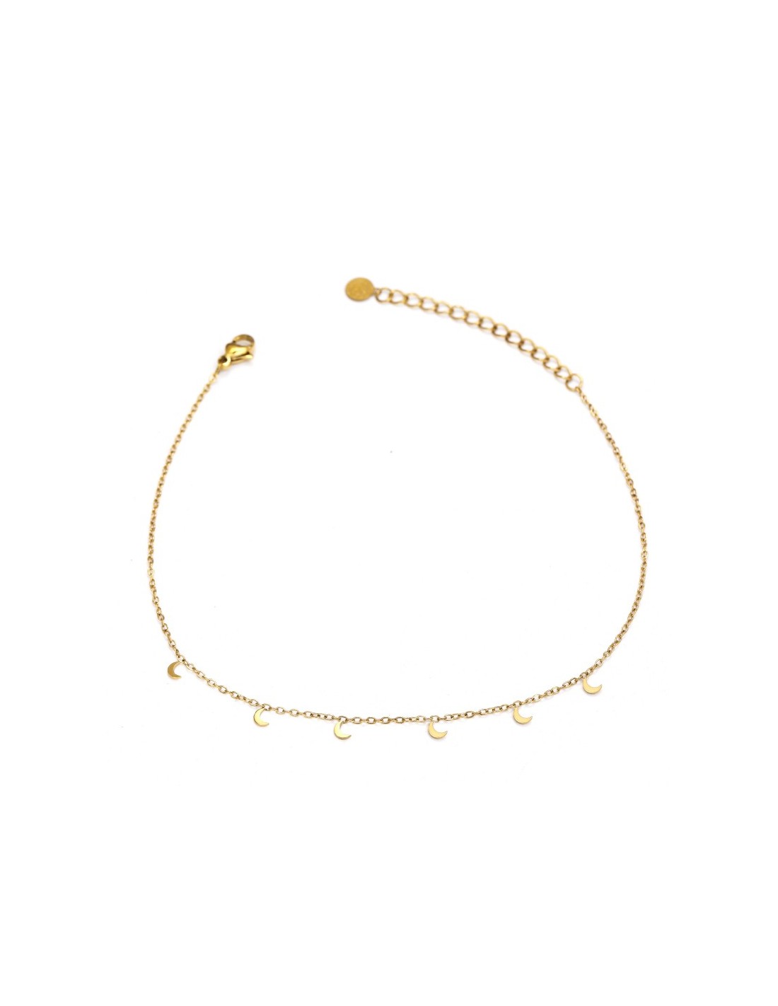 Tobillera con unos delicados lunas colgados sucesivamente. Su diseño minimalista y cómodo la convierte en una pieza versátil.