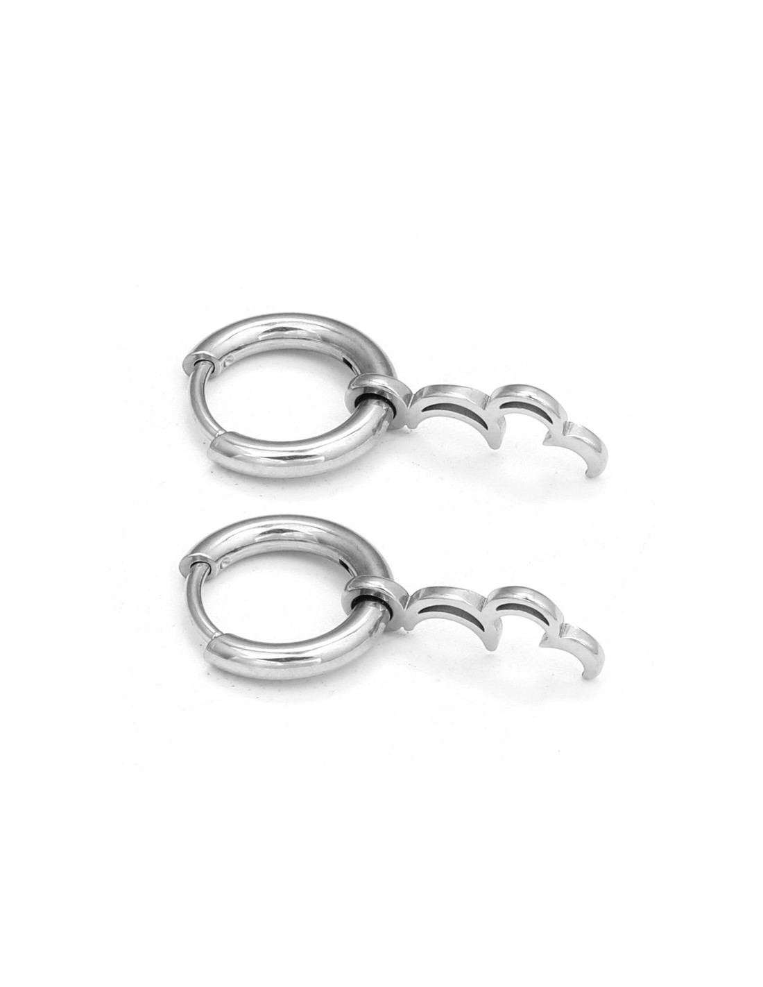 Pendientes de aro plateados pequeños con lunas colgantes, estilo delicado y actual.