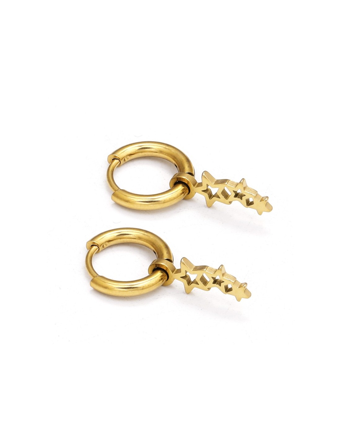 Pendientes de aro dorados pequeños con estrellas colgantes, estilo delicado y actual.