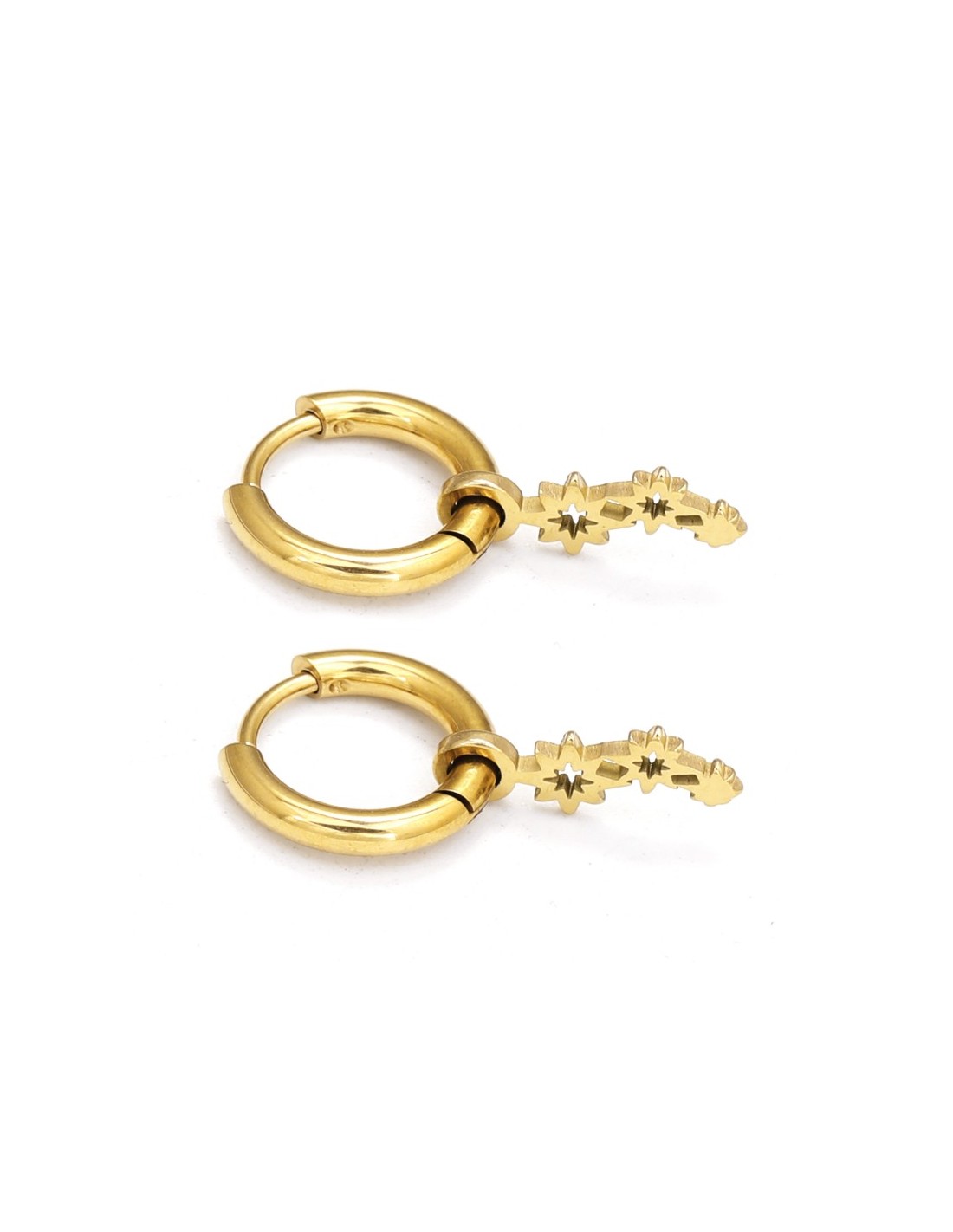 Pendientes de aro dorados pequeños con estrellas colgantes, estilo delicado y actual.