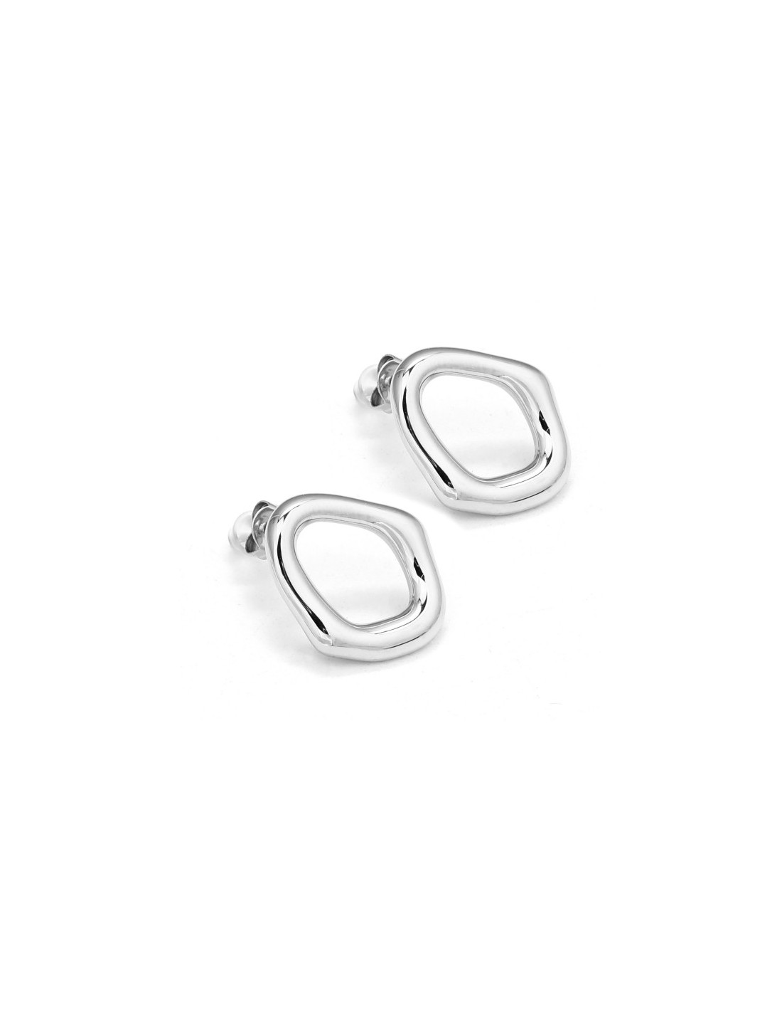Pendientes plateados con diseño abierto de forma geométrica irregular. Su estilo elegante y versátil la hace ideal para cualquier ocasión.