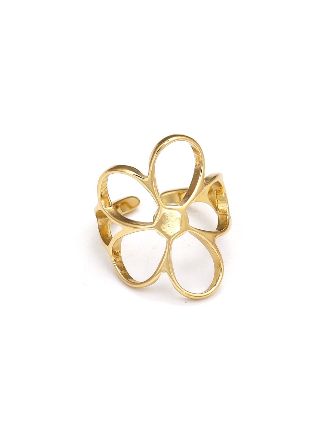 Anillo dorado con flores caladas, ligero y artístico.