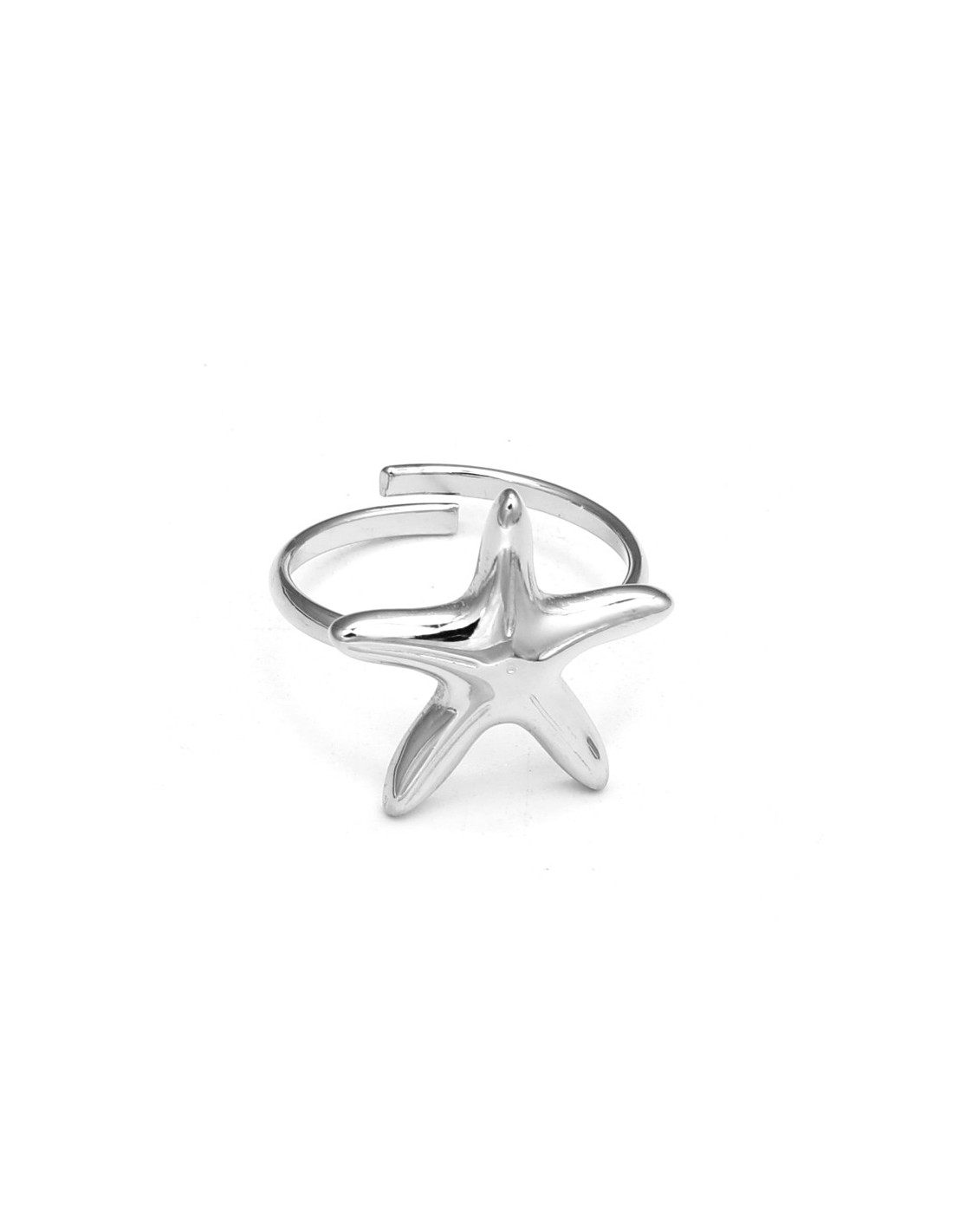 Anillo plateado en forma de estrella de mar. Una pieza elegante y moderna para cualquier ocasión.
