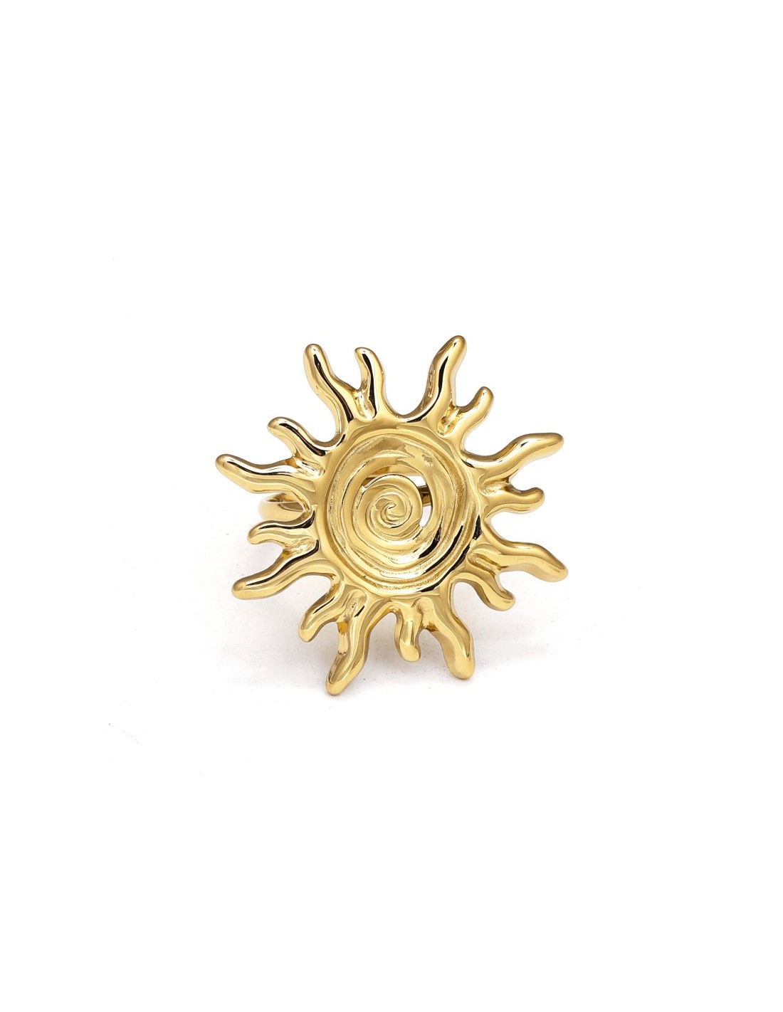 Anillo con diseño de sol y rayos marcados, estilo artístico.