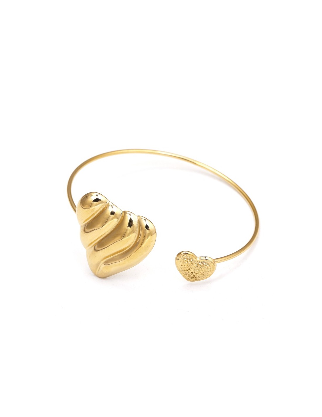 Pulsera rígida dorada con dos corazones, delicada y elegante.