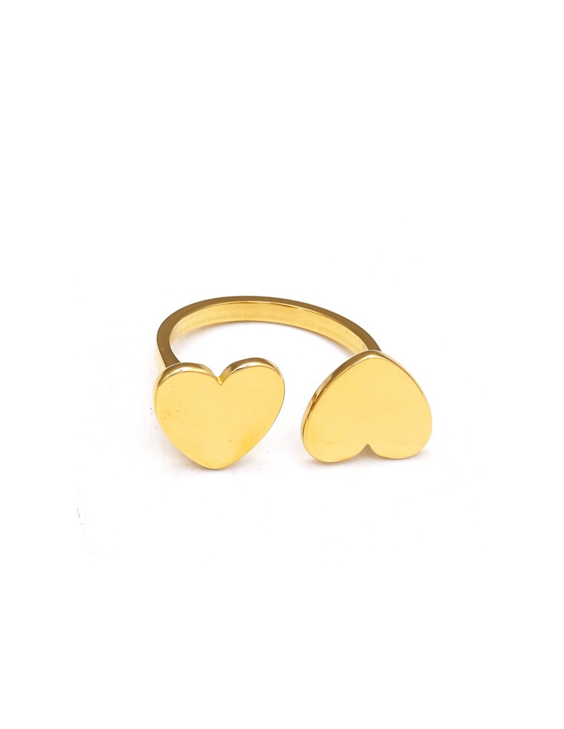 Anillo con dos corazones lisos y simétricos, de superficie pulida y bordes suaves, unidos en un diseño abierto y ligero.