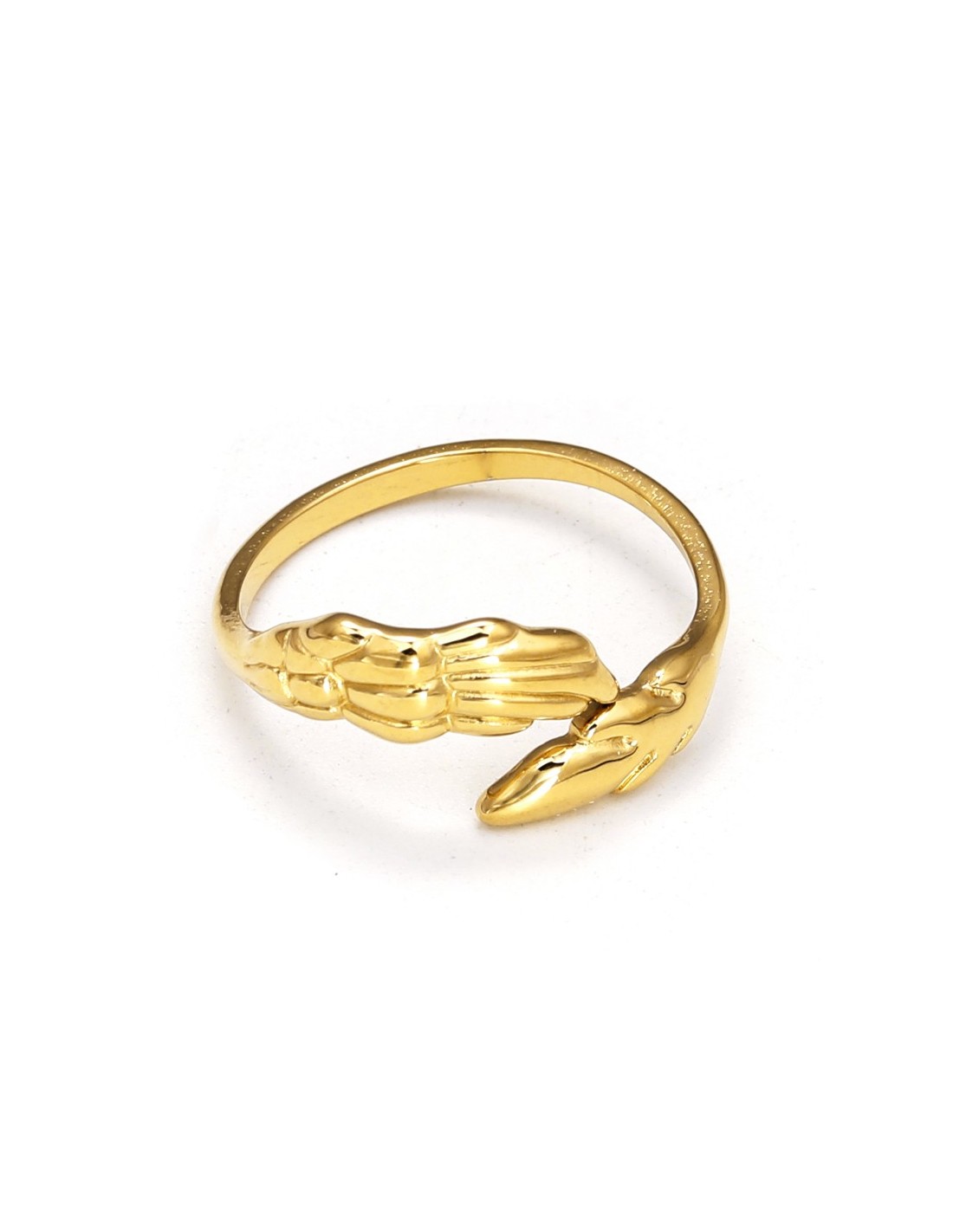 Anillo con diseño de pulmas que se unen en el centro formando un diseño armonioso y brillante.