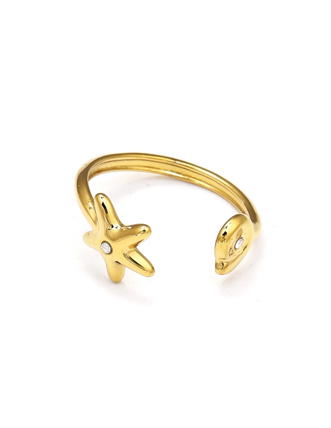 Anillo con una pequeña estrella decorativa en un extrem y un pequeño diamante adorna el centro, con estilo moderno y elegante.
