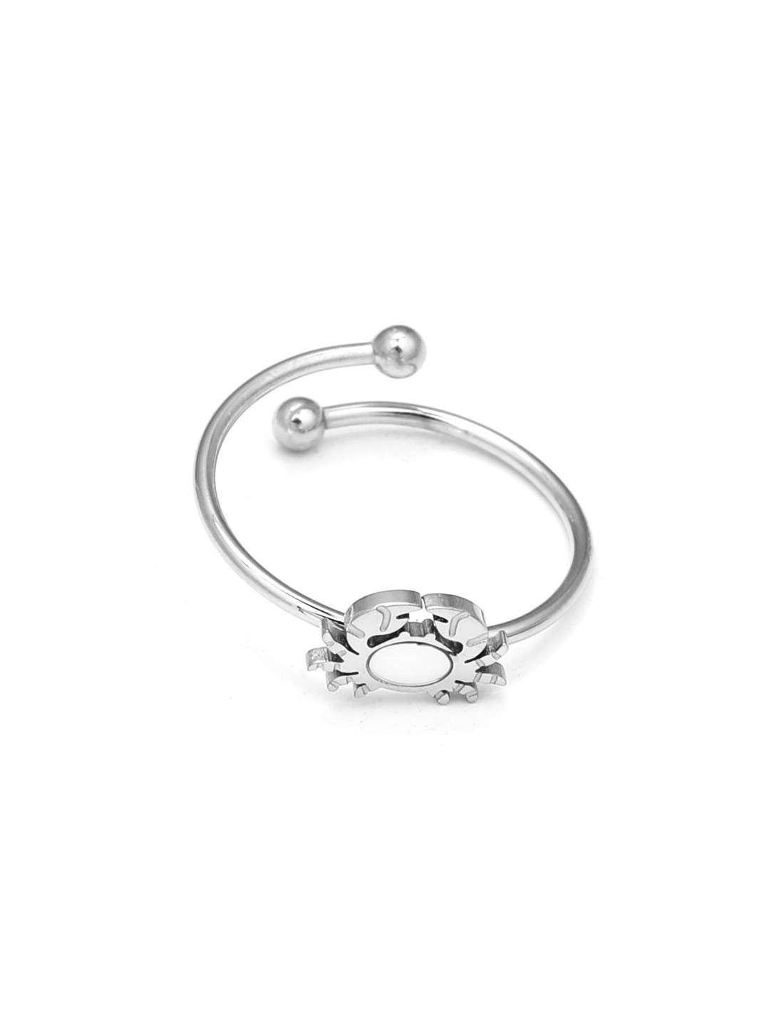 Anillo con diseño de cangrejo presenta una incrustación central de nácar. Contornos suaves y acabado brillante que combinan el brillo natural del nácar con un estilo marino elegante.