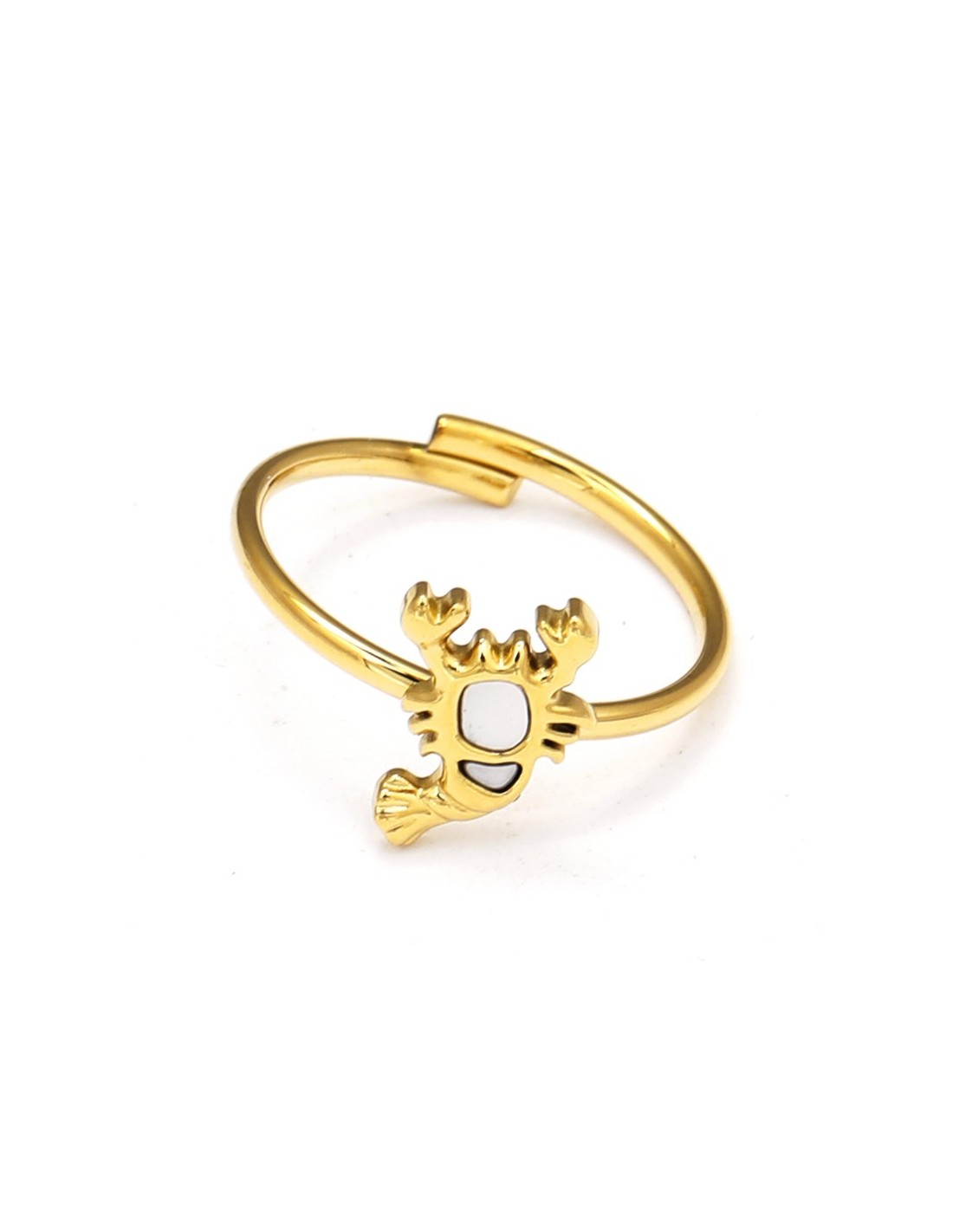 Anillo con forma de langosta en diseño sencillo, con centro de nácar que resalta por su brillo suave. Estilo limpio y moderno con acabado pulido.