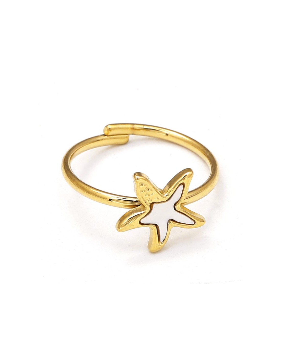 Anillo con forma de estrella de mar en diseño sencillo, con centro de nácar que resalta por su brillo suave. Estilo limpio y moderno con acabado pulido.