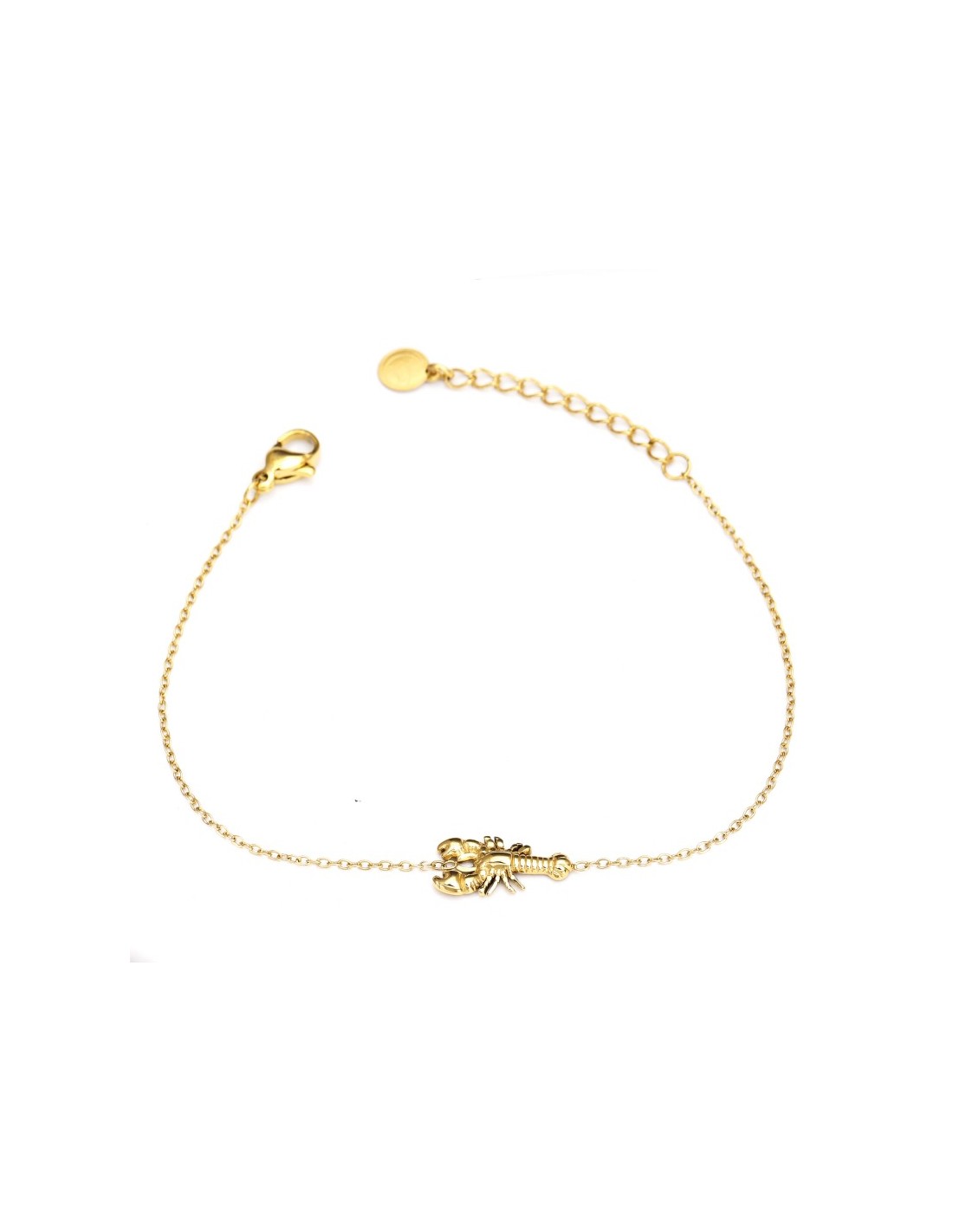 Pulsera fina dorada con colgante de langosta