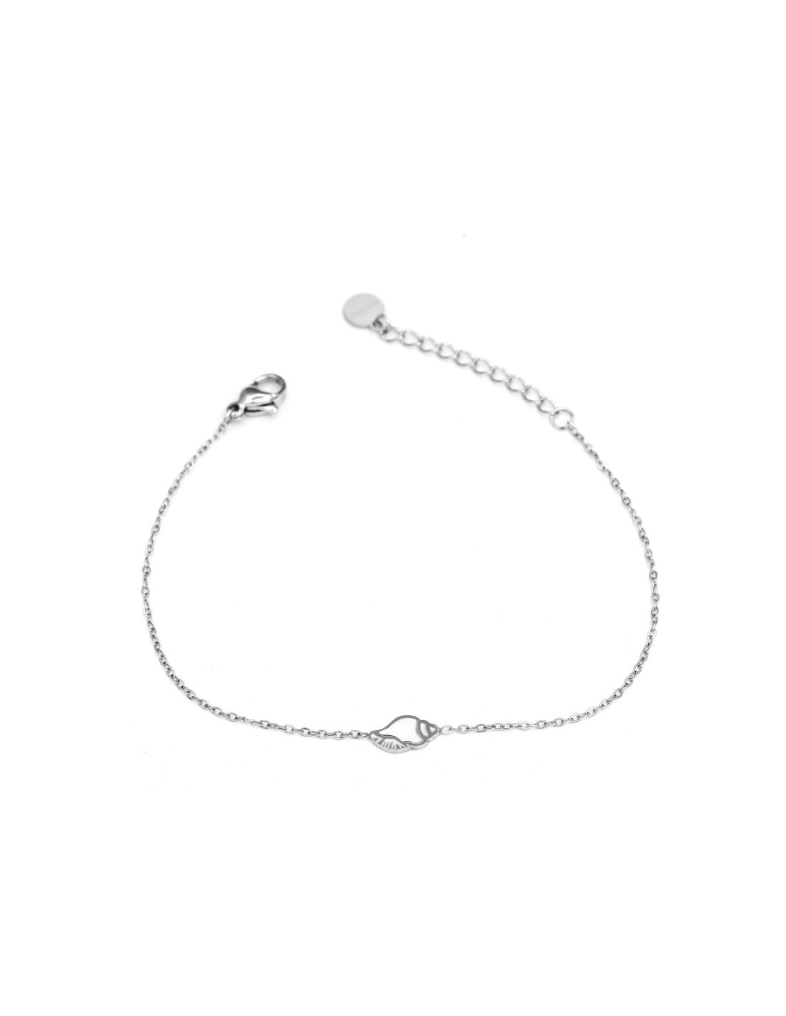 Pulsera plateada de diseño minimalista con un caracola colgado en el centro. Una pieza moderna y sofisticada, perfecta para quienes buscan un accesorio simple y con carácter.
