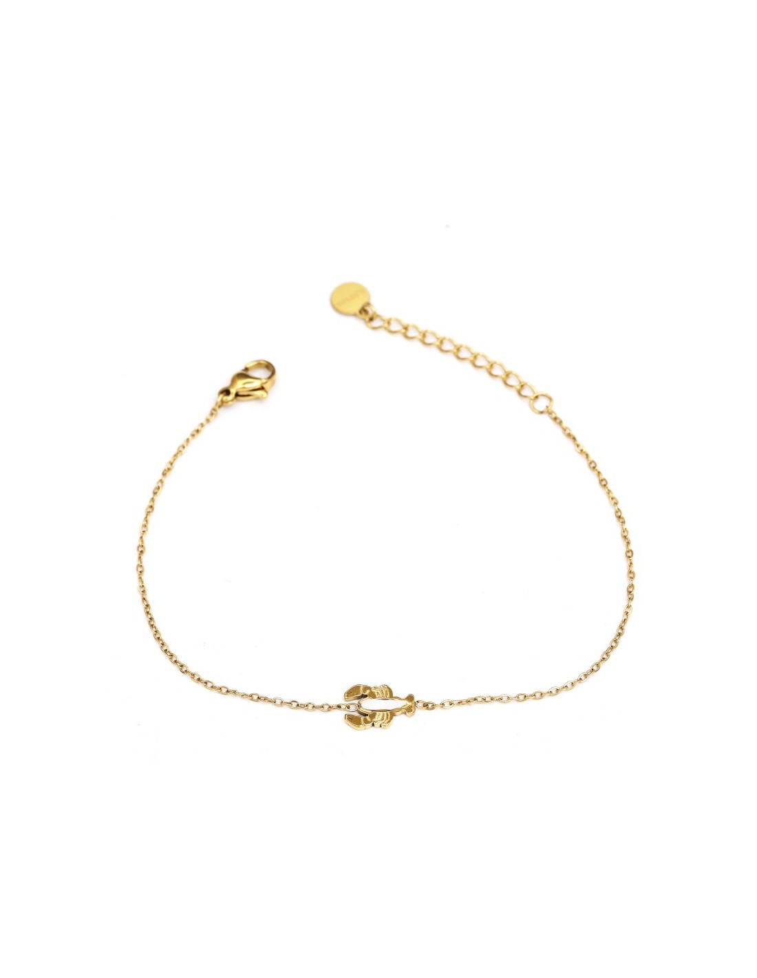 Pulsera dorada de diseño minimalista con un langosta colgado en el centro. Una pieza moderna y sofisticada, perfecta para quienes buscan un accesorio simple y con carácter.