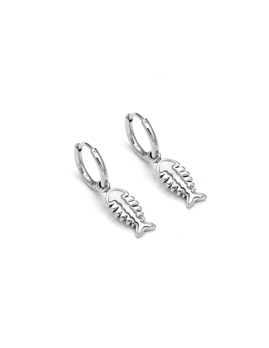 Pendientes de aro pequeños con colgantes de espina de pescado con nácar. El diseño es divertido, detallado y adecuado para uso diario.