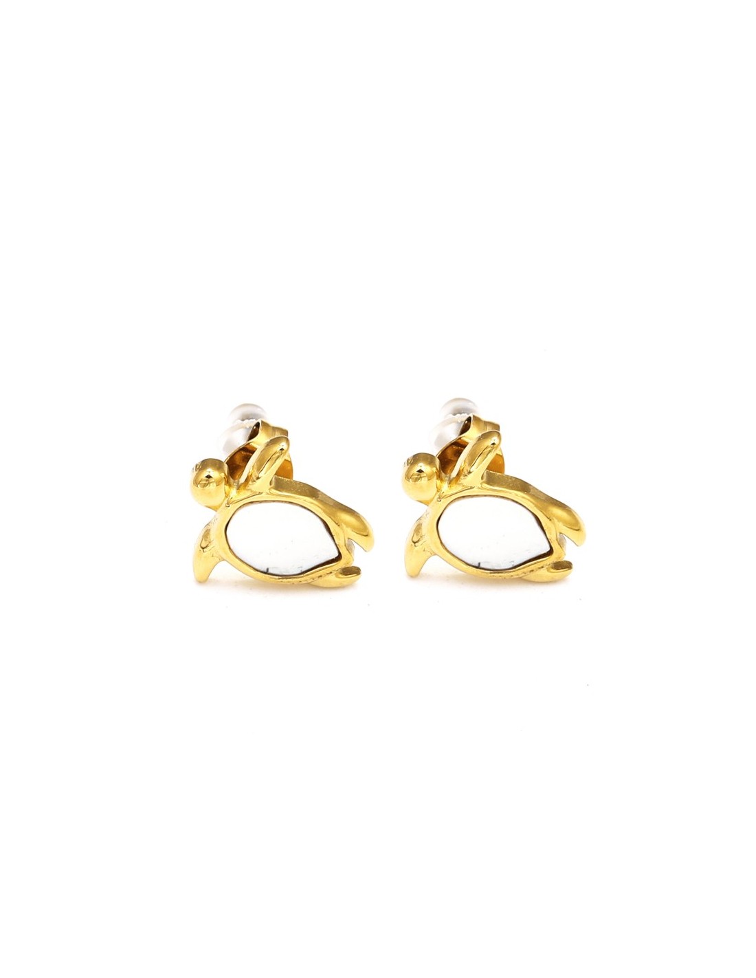 Pendientes pequeños de tortuga con nácar. El diseño es ligero, elegante y adecuado para uso diario.