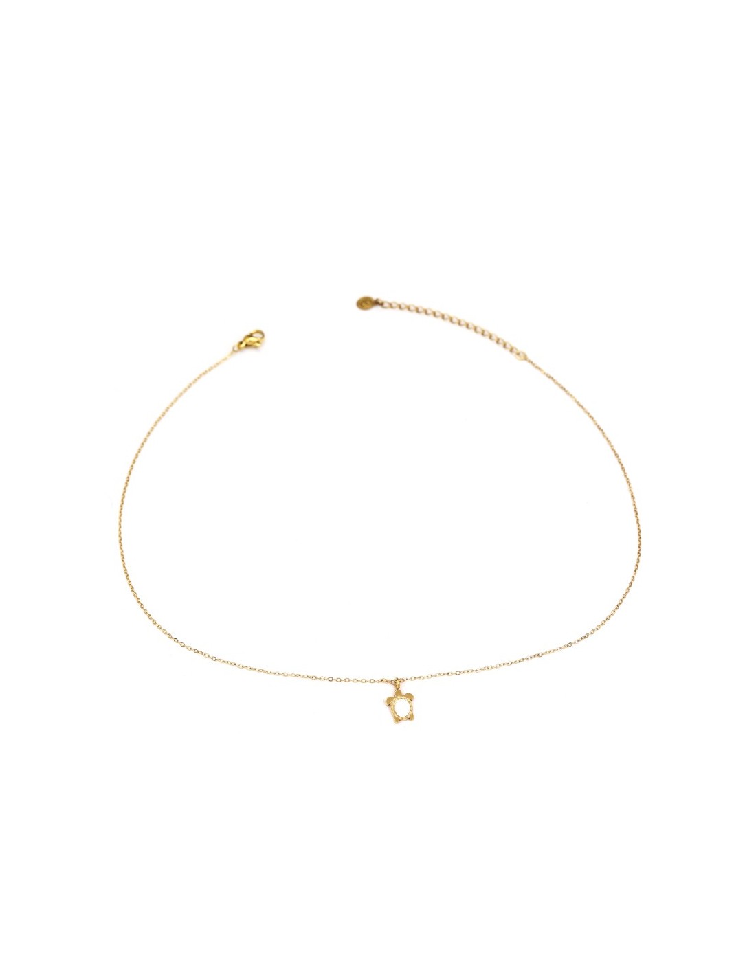 Collar con diseño de tortuga, con una pieza central de nácar que forma el caparazón. Su estilo elegante y versátil la hace ideal para cualquier ocasión.