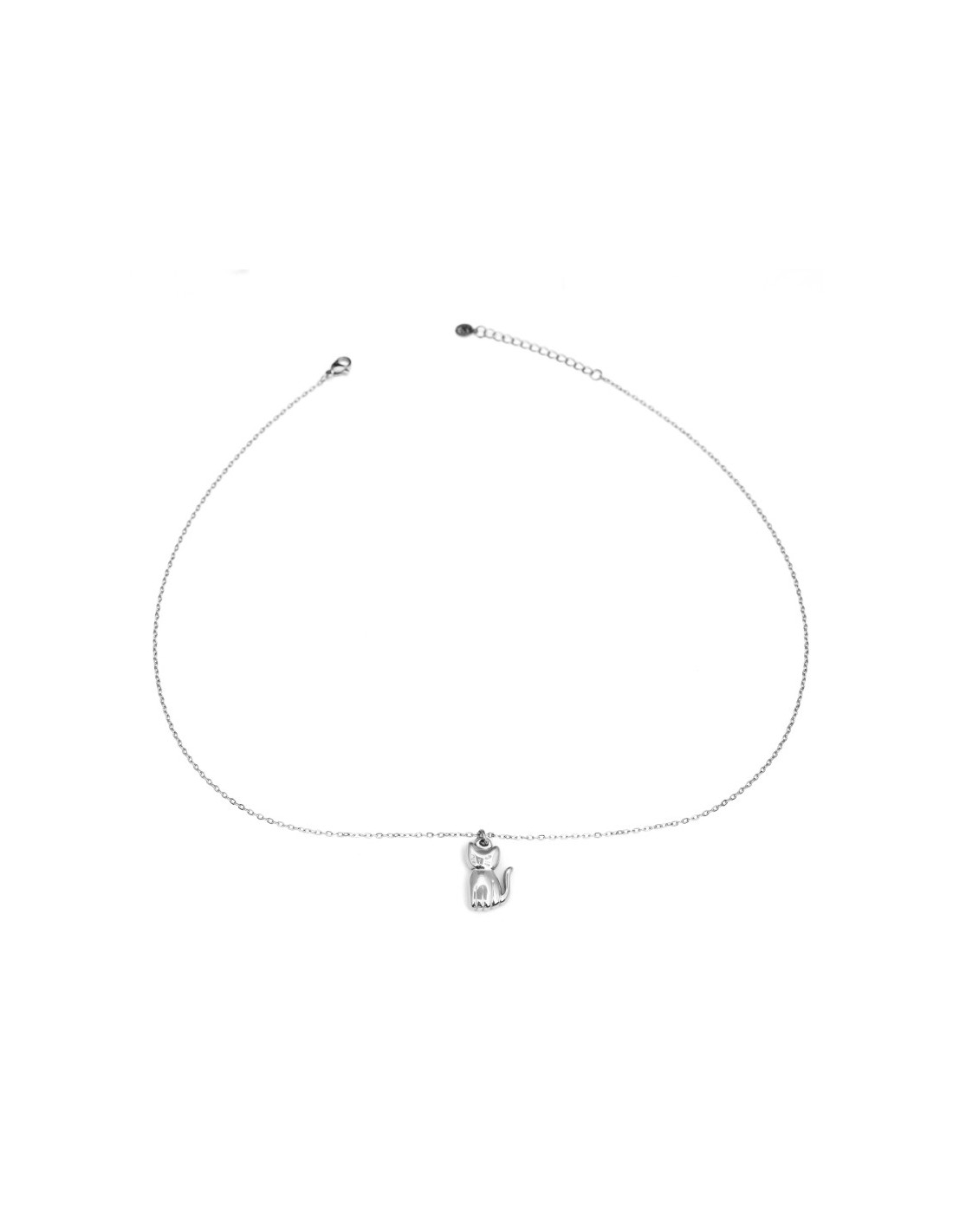 Collar delicado con colgante de gato estilizado, de forma redondeada y acabado brillante. Estilo tierno y moderno.