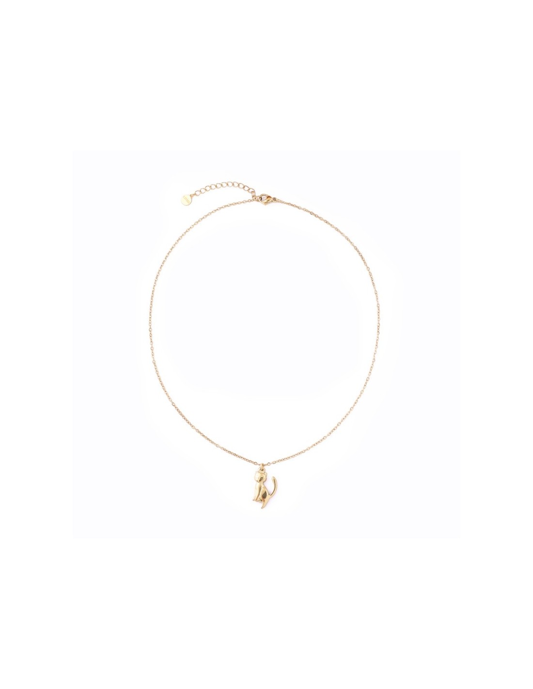 Collar delicado con colgante de gato estilizado, de forma redondeada y acabado brillante. Estilo tierno y moderno.