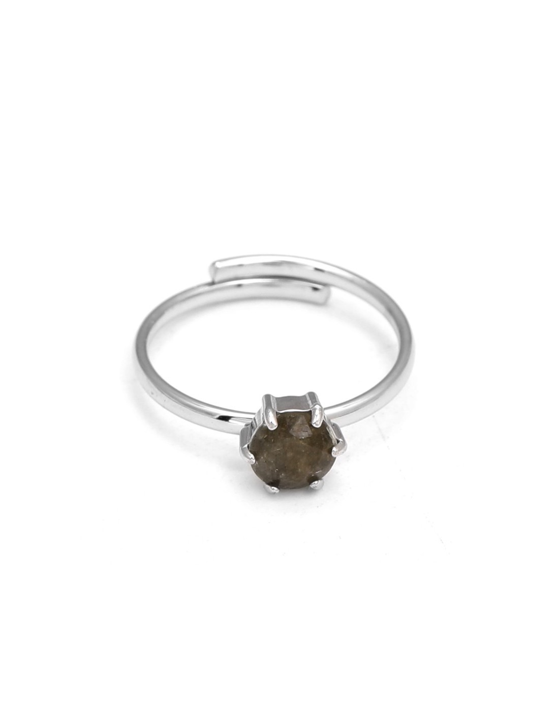 Anillo plateado con piedra en forma de círculo