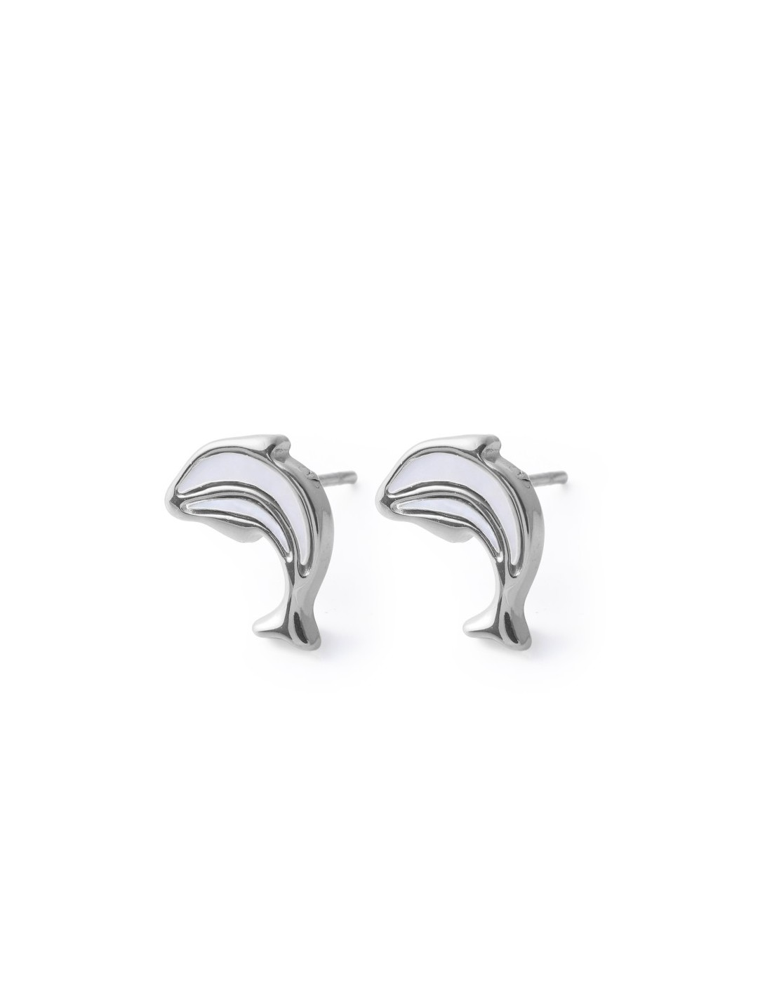 Pendientes plateados de delfín con nácar