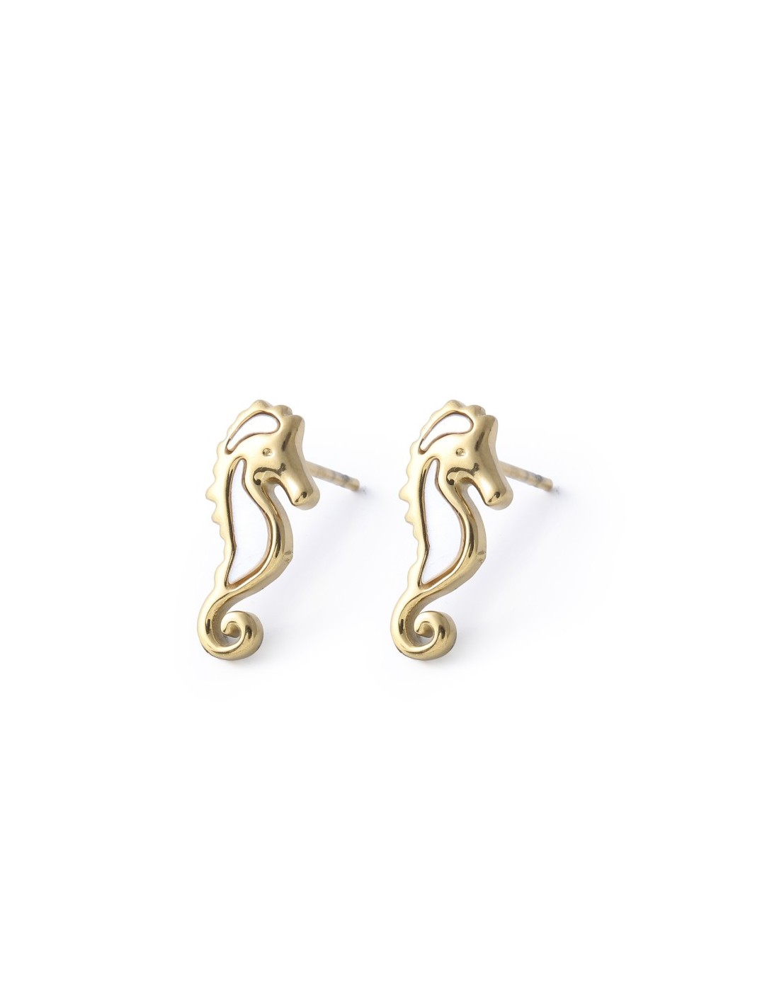 Pendientes pequeños de caballito de mar con nácar. El diseño es ligero, elegante y adecuado para uso diario.