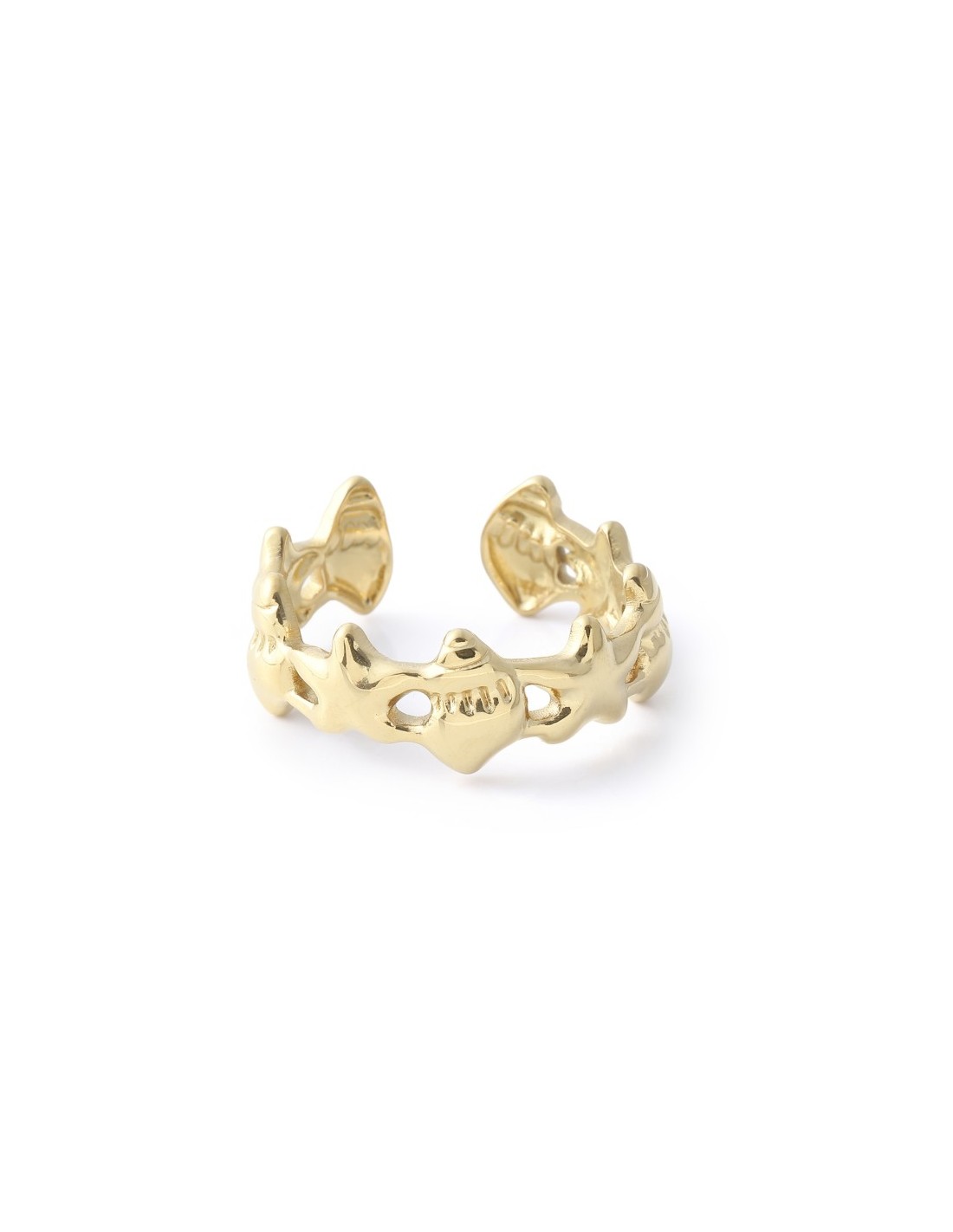 Anillo formado al conectar estrellas de mar y conchas marinas, moderno y llamativo.