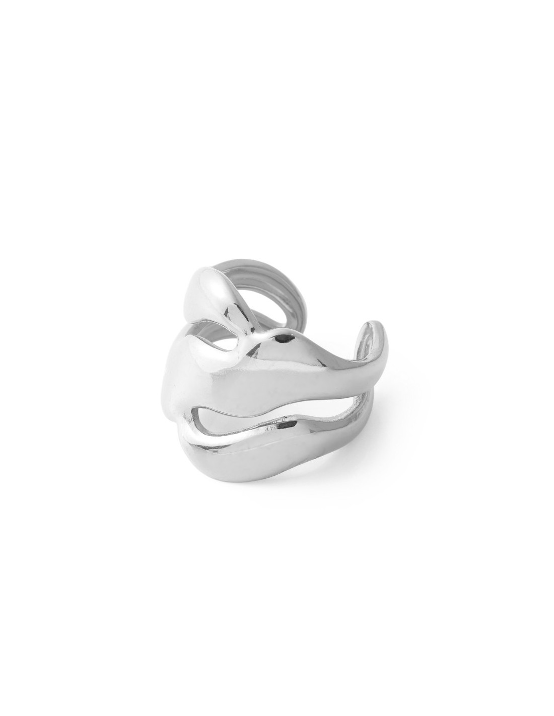 Anillo de líneas curvas con estilo contemporáneo. Su acabado pulido y su estilo minimalista lo convierten en una pieza moderna y versátil.