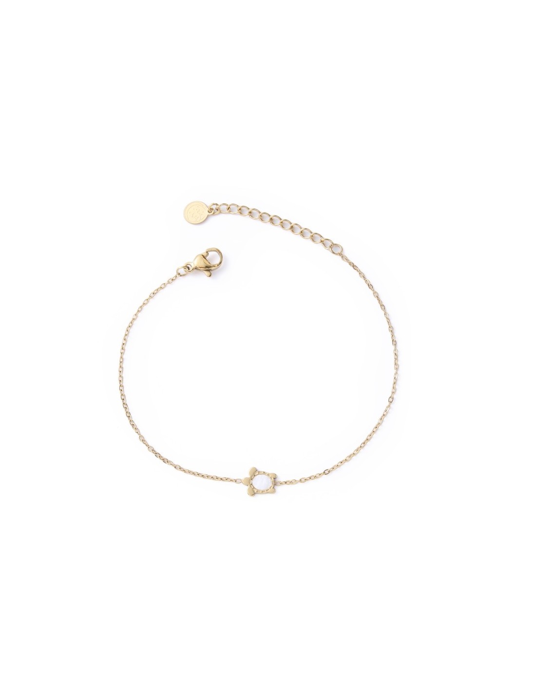 Pulsera dorada de diseño minimalista con un tortuga colgado en el centro. Una pieza moderna y sofisticada, perfecta para quienes buscan un accesorio simple y con carácter.