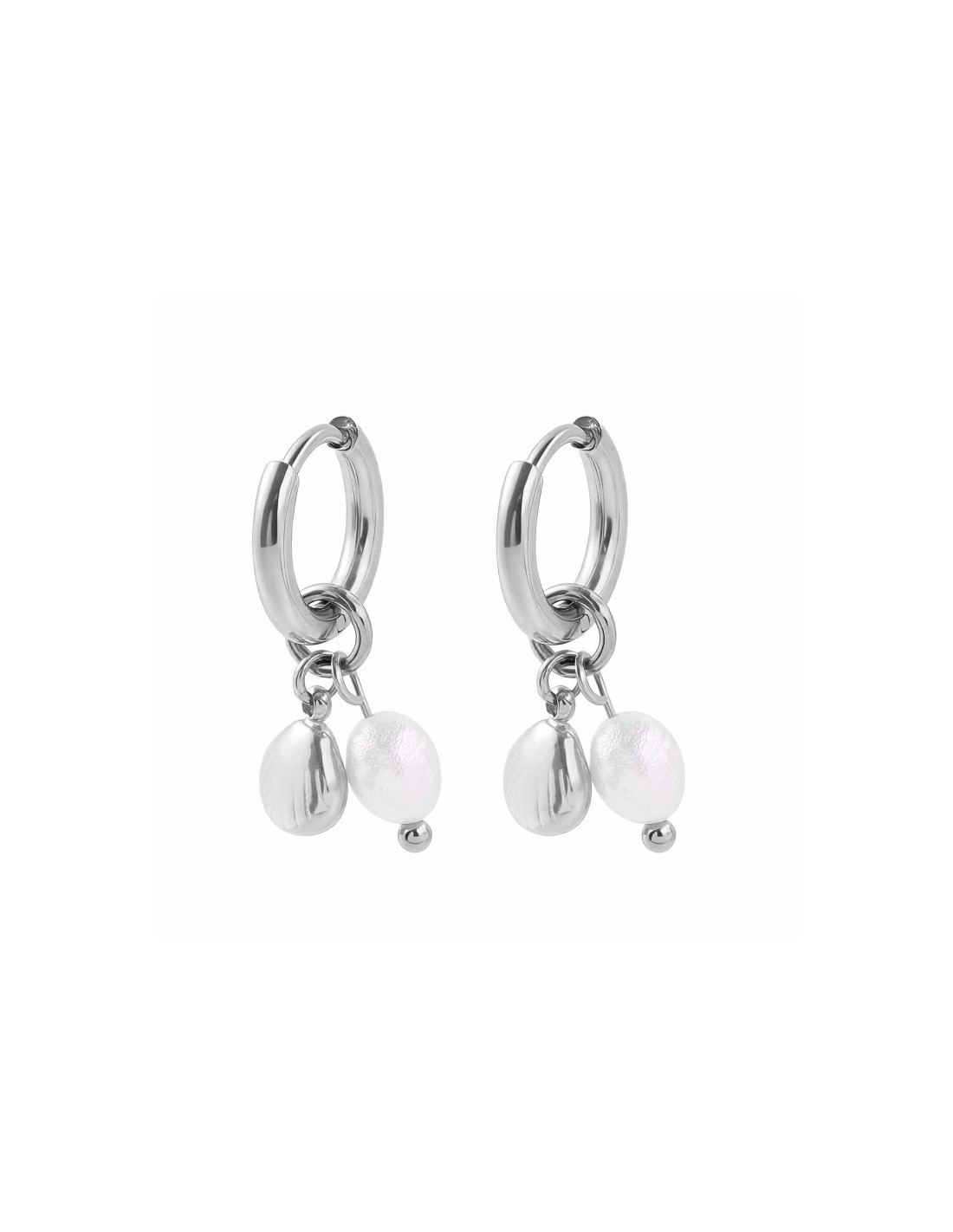 Pendientes con aro pequeño decorados con una perla y un colgante de concha. Diseño marino con acabado brillante y estilo delicado.